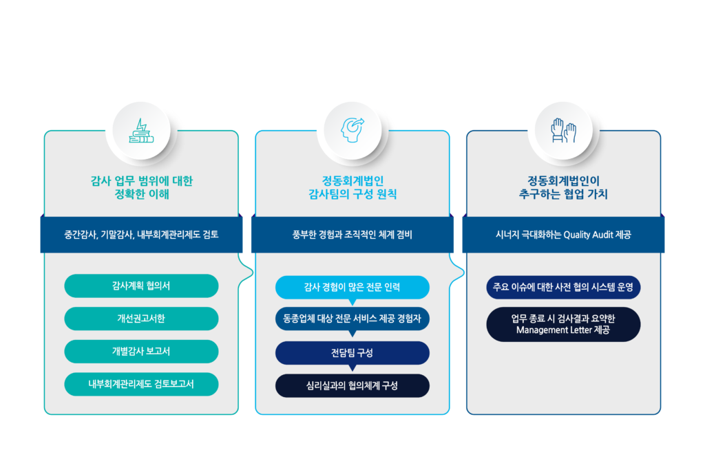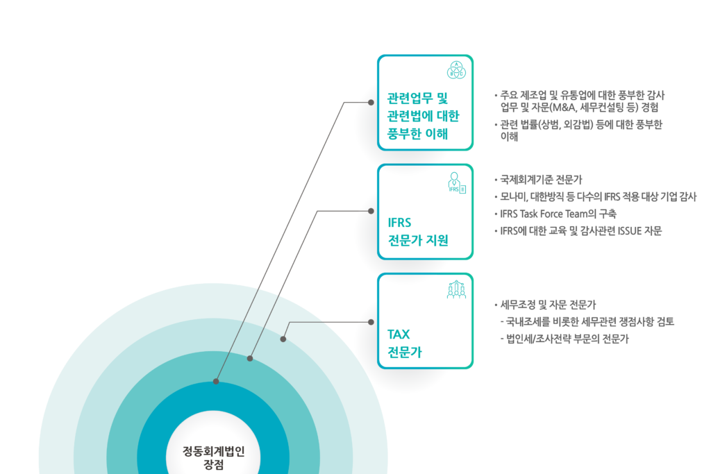 이용하도록 맞춤형 서비스를 지원하고 있습니다. 정동회계법인의 차별화된 경쟁력 지금 바로 확인하세요.